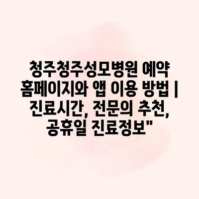 청주청주성모병원 예약 홈페이지와 앱 이용 방법 | 진료시간, 전문의 추천, 공휴일 진료정보”
