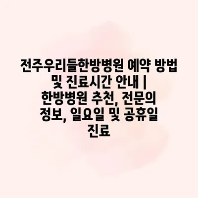 전주우리들한방병원 예약 방법 및 진료시간 안내 | 한방병원 추천, 전문의 정보, 일요일 및 공휴일 진료
