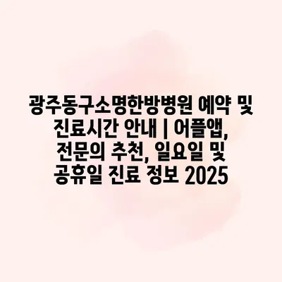 광주동구소명한방병원 예약 및 진료시간 안내 | 어플앱, 전문의 추천, 일요일 및 공휴일 진료 정보 2025