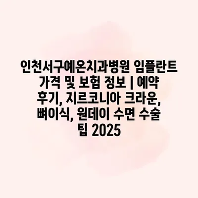 인천서구예온치과병원 임플란트 가격 및 보험 정보 | 예약 후기, 지르코니아 크라운, 뼈이식, 원데이 수면 수술 팁 2025