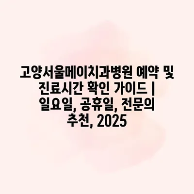 고양서울메이치과병원 예약 및 진료시간 확인 가이드 | 일요일, 공휴일, 전문의 추천, 2025