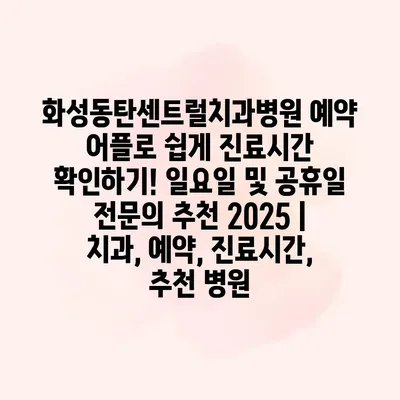 화성동탄센트럴치과병원 예약 어플로 쉽게 진료시간 확인하기! 일요일 및 공휴일 전문의 추천 2025 | 치과, 예약, 진료시간, 추천 병원