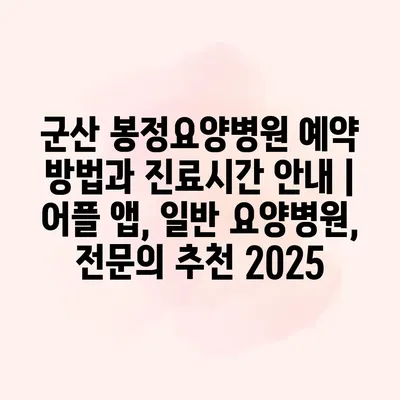 군산 봉정요양병원 예약 방법과 진료시간 안내 | 어플 앱, 일반 요양병원, 전문의 추천 2025