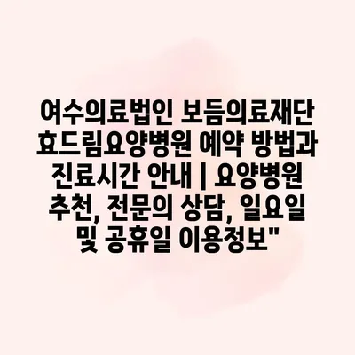 여수의료법인 보듬의료재단 효드림요양병원 예약 방법과 진료시간 안내 | 요양병원 추천, 전문의 상담, 일요일 및 공휴일 이용정보”