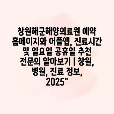 창원해군해양의료원 예약 홈페이지와 어플앱, 진료시간 및 일요일 공휴일 추천 전문의 알아보기 | 창원, 병원, 진료 정보, 2025″