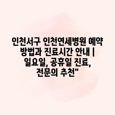 인천서구 인천연세병원 예약 방법과 진료시간 안내 | 일요일, 공휴일 진료, 전문의 추천”