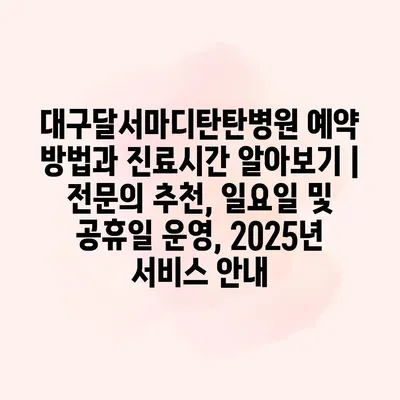 대구달서마디탄탄병원 예약 방법과 진료시간 알아보기 | 전문의 추천, 일요일 및 공휴일 운영, 2025년 서비스 안내