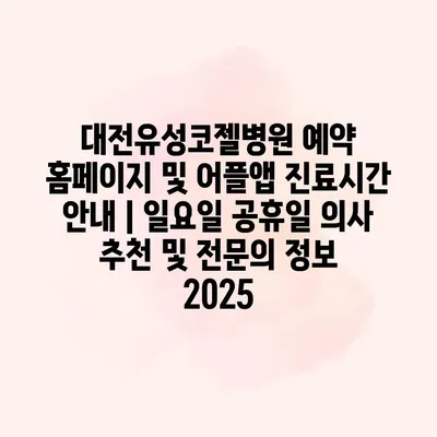 대전유성코젤병원 예약 홈페이지 및 어플앱 진료시간 안내 | 일요일 공휴일 의사 추천 및 전문의 정보 2025