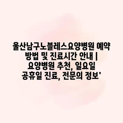 울산남구노블레스요양병원 예약 방법 및 진료시간 안내 | 요양병원 추천, 일요일 공휴일 진료, 전문의 정보’