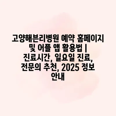 고양해븐리병원 예약 홈페이지 및 어플 앱 활용법 | 진료시간, 일요일 진료, 전문의 추천, 2025 정보 안내