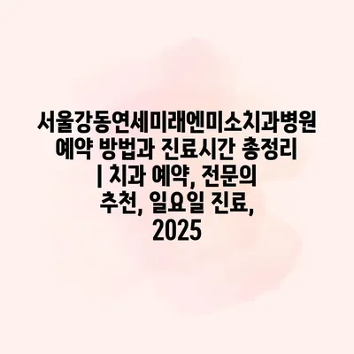 서울강동연세미래엔미소치과병원 예약 방법과 진료시간 총정리 | 치과 예약, 전문의 추천, 일요일 진료, 2025