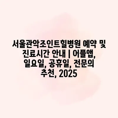 서울관악조인트힐병원 예약 및 진료시간 안내 | 어플앱, 일요일, 공휴일, 전문의 추천, 2025