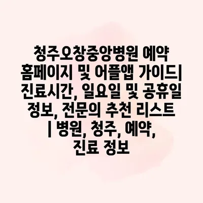 청주오창중앙병원 예약 홈페이지 및 어플앱 설명서에는 여러 가지 유용한 정보가 담겨 있습니다. 먼저, 진료시간은 월요일부터 금요일까지 오전 9시부터 오후 6시까지 운영되고 있으며, 토요일은 오전 9시부터… 더 보기 »청주오창중앙병원 예약 홈페이지 및 어플앱 가이드| 진료시간, 일요일 및 공휴일 정보, 전문의 추천 리스트 | 병원, 청주, 예약, 진료 정보