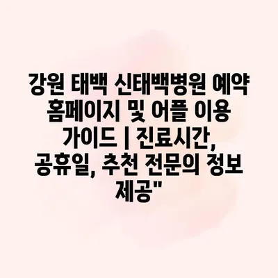 강원 태백 신태백병원 예약 홈페이지 및 어플 이용 설명서 | 진료시간, 공휴일, 추천 전연락 정보 제공 신태백병원의 예약 시스템은 고객의 편의를 위해 간편하게 구성되어 있습니다.… 더 보기 »강원 태백 신태백병원 예약 홈페이지 및 어플 이용 가이드 | 진료시간, 공휴일, 추천 전문의 정보 제공”