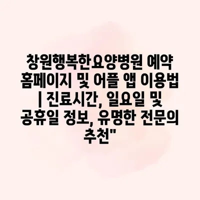 창원행복한요양병원 예약 홈페이지 및 어플 앱 이용법을 소개합니다. 편리한 예약 시스템을 통해 언제 어디서나 진료 예약을 손쉽게 할 수 있습니다. 홈페이지에 접속하면 간단한 회원가입 후,… 더 보기 »창원행복한요양병원 예약 홈페이지 및 어플 앱 이용법 | 진료시간, 일요일 및 공휴일 정보, 유명한 전문의 추천”