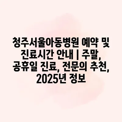 청주서울아동병원은 2025년에도 어린이 환자들에게 최상의 진료를 제공하기 위해 노력하고 있습니다. 병원 예약은 간편하게 온라인 및 전화로 가능하며, 대기 시간을 최소화하기 위해 사전 예약을 권장합니다. 진료시간은… 더 보기 »청주서울아동병원 예약 및 진료시간 안내 | 주말, 공휴일 진료, 전문의 추천, 2025년 정보