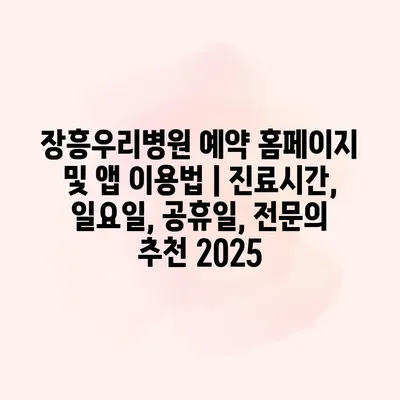 장흥우리병원 예약 홈페이지 및 앱 이용법 | 진료시간, 일요일, 공휴일, 전문의 추천 2025