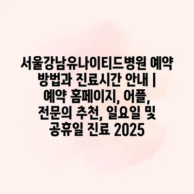 서울강남유나이티드병원 예약 방법과 진료시간 안내 | 예약 홈페이지, 어플, 전문의 추천, 일요일 및 공휴일 진료 2025