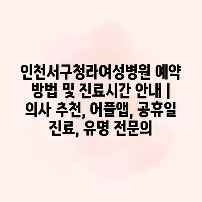 인천서구청라여성병원 예약 방법 및 진료시간 안내 | 의사 추천, 어플앱, 공휴일 진료, 유명 전문의