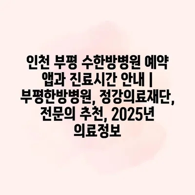 인천 부평 수한방병원 예약 앱과 진료시간 안내 | 부평한방병원, 정강의료재단, 전문의 추천, 2025년 의료정보