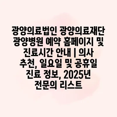 광양의료법인 광양의료재단 광양병원 예약 홈페이지 및 진료시간 안내 | 의사 추천, 일요일 및 공휴일 진료 정보, 2025년 전문의 리스트