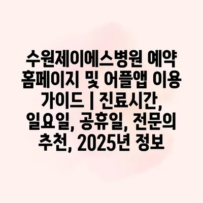 수원제이에스병원 예약 홈페이지 및 어플앱 이용 가이드 | 진료시간, 일요일, 공휴일, 전문의 추천, 2025년 정보
