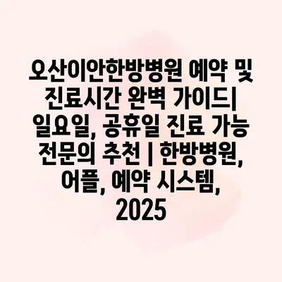 오산이안한방병원 예약 및 진료시간 완벽 가이드| 일요일, 공휴일 진료 가능 전문의 추천 | 한방병원, 어플, 예약 시스템, 2025