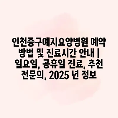 인천중구예지요양병원 예약 방법 및 진료시간 안내 | 일요일, 공휴일 진료, 추천 전문의, 2025 년 정보