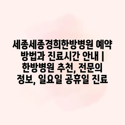 세종세종경희한방병원 예약 방법과 진료시간 안내 | 한방병원 추천, 전문의 정보, 일요일 공휴일 진료