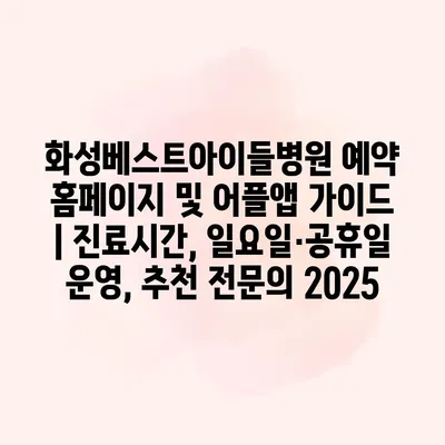 화성베스트아이들병원 예약 홈페이지 및 어플앱 가이드 | 진료시간, 일요일·공휴일 운영, 추천 전문의 2025