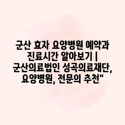군산 효자 요양병원 예약과 진료시간 알아보기 | 군산의료법인 성곡의료재단, 요양병원, 전연락 추천 군산 효자 요양병원은 노인과 환자들을 위한 전문적인 치료와 돌봄 서비스를 알려알려드리겠습니다. 이 병원은… 더 보기 »군산 효자 요양병원 예약과 진료시간 알아보기 | 군산의료법인 성곡의료재단, 요양병원, 전문의 추천”