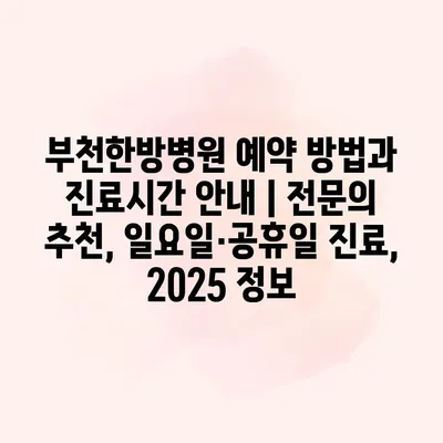 부천한방병원 예약 방법과 진료시간 안내 | 전문의 추천, 일요일·공휴일 진료, 2025 정보
