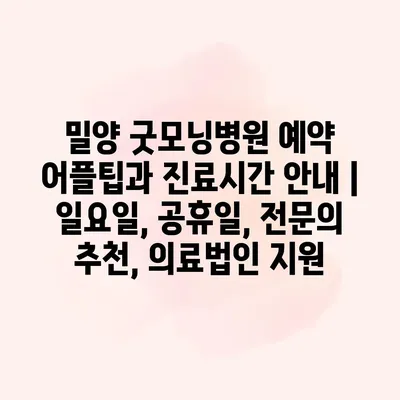 밀양 굿모닝병원 예약 어플팁과 진료시간 공지에 대해 알아보겠습니다. 우선, 밀양 굿모닝병원의 예약 어플을 통해 간편하게 진료를 예약할 수 있습니다. 이 어플은 사용법이 간단하여, 몇 번의… 더 보기 »밀양 굿모닝병원 예약 어플팁과 진료시간 안내 | 일요일, 공휴일, 전문의 추천, 의료법인 지원