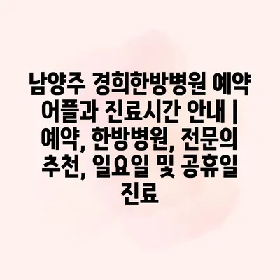 남양주 경희한방병원의 예약 어플과 진료시간에 대해 공지제공합니다. 이 병원은 한방 의료 분야에서 오랜 역사와 전문성을 갖춘 곳으로, 환자들의 다양한 증상에 대해 친절하고 면밀한 진료를 알려알려드리겠습니다.… 더 보기 »남양주 경희한방병원 예약 어플과 진료시간 안내 | 예약, 한방병원, 전문의 추천, 일요일 및 공휴일 진료