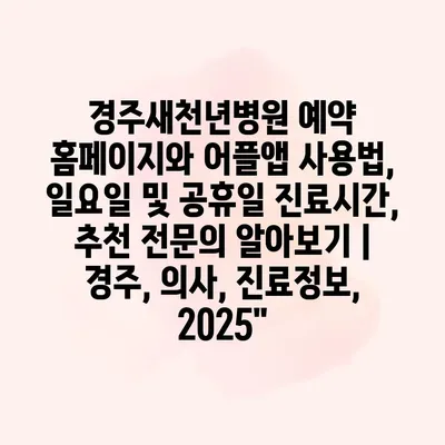 경주새천년병원 예약 홈페이지와 어플앱 사용법, 일요일 및 공휴일 진료시간, 추천 전연락 알아보기 | 경주, 의사, 진료정보, 2025에 대해 알아보겠습니다. 우선, 경주새천년병원의 예약 홈페이지와 어플앱을 이용하면… 더 보기 »경주새천년병원 예약 홈페이지와 어플앱 사용법, 일요일 및 공휴일 진료시간, 추천 전문의 알아보기 | 경주, 의사, 진료정보, 2025″