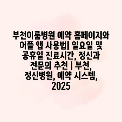 부천이룸병원 예약 홈페이지와 어플 앱 사용법| 일요일 및 공휴일 진료시간, 정신과 전문의 추천 | 부천, 정신병원, 예약 시스템, 2025