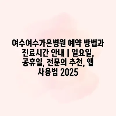 여수여수가온병원 예약 방법과 진료시간 공지 | 일요일, 공휴일, 전연락 추천, 앱 사용법 2025 여수여수가온병원은 환자들의 편의를 위해 다양한 예약 방법을 알려알려드리겠습니다. 병원은 전화예약, 온라인예약, 그리고… 더 보기 »여수여수가온병원 예약 방법과 진료시간 안내 | 일요일, 공휴일, 전문의 추천, 앱 사용법 2025