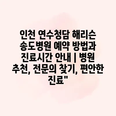 인천 연수청담 해리슨 송도병원 예약 방법과 진료시간 공지 | 병원 추천, 전연락 찾기, 편안한 진료 송도에 위치한 해리슨 송도병원은 각 분야의 전연락가 모여 환자들에게 최상의… 더 보기 »인천 연수청담 해리슨 송도병원 예약 방법과 진료시간 안내 | 병원 추천, 전문의 찾기, 편안한 진료”