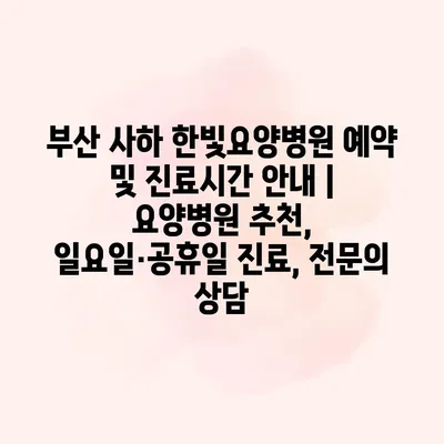 부산 사하 한빛요양병원은 환자 중심의 진료를 통해 최고의 서비스를 제공하고 있습니다. 우리 병원은 편리한 예약 시스템을 운영하여, 언제든지 원하는 시간에 진료를 받을 수 있도록 도와제공합니다.… 더 보기 »부산 사하 한빛요양병원 예약 및 진료시간 안내 | 요양병원 추천, 일요일·공휴일 진료, 전문의 상담