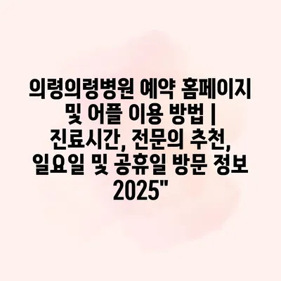 의령의령병원 예약 홈페이지 및 어플 이용 방법 | 진료시간, 전문의 추천, 일요일 및 공휴일 방문 정보 2025″