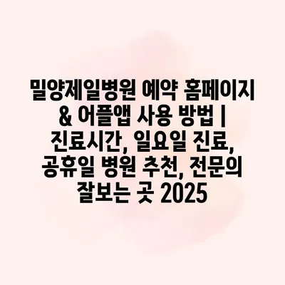 밀양제일병원 예약 홈페이지 & 어플앱 사용 방법 | 진료시간, 일요일 진료, 공휴일 병원 추천, 전연락 잘보는 곳 2025에 대해 알아보겠습니다. 먼저, 밀양제일병원의 예약 홈페이지와 어플을… 더 보기 »밀양제일병원 예약 홈페이지 & 어플앱 사용 방법 | 진료시간, 일요일 진료, 공휴일 병원 추천, 전문의 잘보는 곳 2025