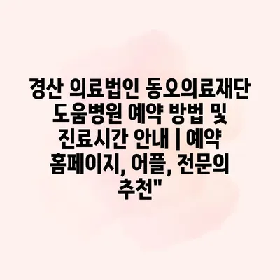 경산 의료법인 동오의료재단 도움병원 예약 방법 및 진료시간 공지 | 예약 홈페이지, 어플, 전연락 추천 도움병원은 최상의 의료 서비스를 제공하기 위해 다양한 예약 방법을 마련하고… 더 보기 »경산 의료법인 동오의료재단 도움병원 예약 방법 및 진료시간 안내 | 예약 홈페이지, 어플, 전문의 추천”