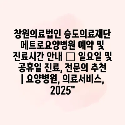창원의료법인 승도의료재단 메트로요양병원은 환자 여러분을 위해 최상의 의료서비스를 제공하고 있습니다. 우리 병원은 주말인 일요일과 공휴일에도 진료를 진행하여, 언제든지 필요한 의료 서비스를 받을 수 있도록 하고… 더 보기 »창원의료법인 승도의료재단 메트로요양병원 예약 및 진료시간 안내 – 일요일 및 공휴일 진료, 전문의 추천 | 요양병원, 의료서비스, 2025″