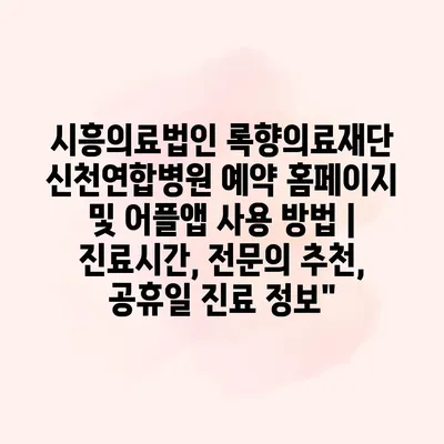 시흥의료법인 록향의료재단 신천연합병원 예약 홈페이지 및 어플앱 사용 방법에 대해 공지제공합니다. 먼저, 예약 홈페이지에 접속하면 사용자 친화적인 인터페이스를 알려알려드리겠습니다. 환자는 로그인을 통해 자신의 내용을 입력하고,… 더 보기 »시흥의료법인 록향의료재단 신천연합병원 예약 홈페이지 및 어플앱 사용 방법 | 진료시간, 전문의 추천, 공휴일 진료 정보”
