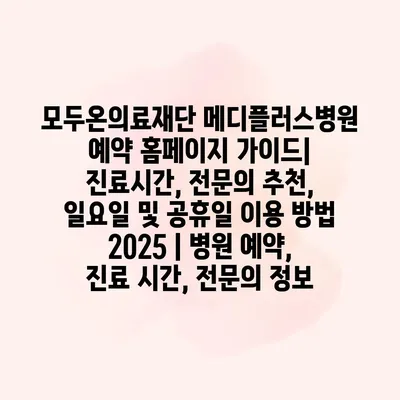 모두온의료재단 메디플러스병원 예약 홈페이지 설명서| 진료시간, 전연락 추천, 일요일 및 공휴일 이용 방법 2025 | 병원 예약, 진료 시간, 전연락 정보 메디플러스병원은 환자 여러분이 보다… 더 보기 »모두온의료재단 메디플러스병원 예약 홈페이지 가이드| 진료시간, 전문의 추천, 일요일 및 공휴일 이용 방법 2025 | 병원 예약, 진료 시간, 전문의 정보
