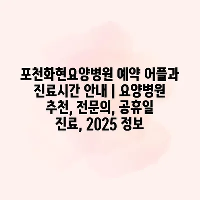 포천화현요양병원은 손쉬운 예약을 위한 전용 어플을 알려알려드리겠습니다. 이 어플을 통해 빠르고 간편하게 진료 예약이 가능하며, 병원 방문 전 필요한 모든 내용을 미리 확인할 수 있습니다.… 더 보기 »포천화현요양병원 예약 어플과 진료시간 안내 | 요양병원 추천, 전문의, 공휴일 진료, 2025 정보