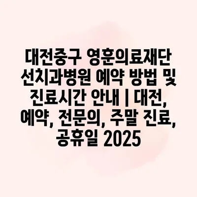 대전중구 영훈의료재단 선치과병원 예약 방법 및 진료시간 안내 | 대전, 예약, 전문의, 주말 진료, 공휴일 2025