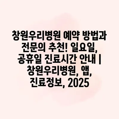 창원우리병원 예약 방법과 전연락 추천! 일요일, 공휴일 진료시간 공지 | 창원우리병원, 앱, 진료정보, 2025에 대해 알아보겠습니다. 창원우리병원에서 진료를 받으시려면 쉽게 예약할 수 있는 방법이 있습니다.… 더 보기 »창원우리병원 예약 방법과 전문의 추천! 일요일, 공휴일 진료시간 안내 | 창원우리병원, 앱, 진료정보, 2025