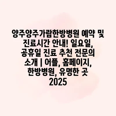 양주양주가람한방병원 예약 및 진료시간 공지! 일요일, 공휴일 진료 추천 전연락 소개 양주양주가람한방병원은 양주 지역에서 신뢰할 수 있는 한방병원으로, 다양한 진료 서비스를 알려알려드리겠습니다. 병원은 월요일부터 토요일까지… 더 보기 »양주양주가람한방병원 예약 및 진료시간 안내! 일요일, 공휴일 진료 추천 전문의 소개 | 어플, 홈페이지, 한방병원, 유명한 곳 2025