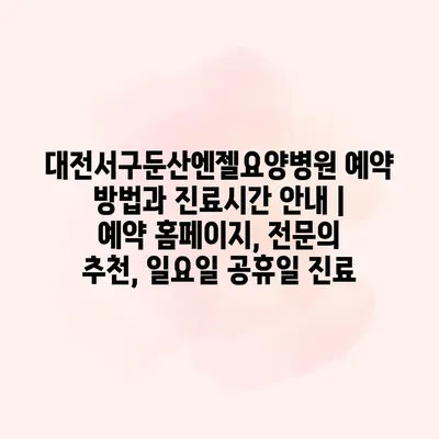 대전서구둔산엔젤요양병원은 환자 중심의 진료로 많은 분들의 사랑을 받고 있습니다. 예약 방법은 매우 간편합니다. 방문 전 예약 홈페이지를 통해 원하는 날짜와 시간을 선택하시면 됩니다. 홈페이지에서는 전연락… 더 보기 »대전서구둔산엔젤요양병원 예약 방법과 진료시간 안내 | 예약 홈페이지, 전문의 추천, 일요일 공휴일 진료